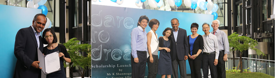 Foreign Minister K Shanmugam presided at the launch of the Dare to Dream scholarship on 20th November 2013 at LASALLE College of the Arts. Isabelle Lim, who has Nager syndrome, was the first recipient of the award to benefit deserving special needs students.