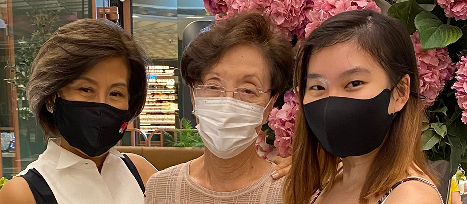 On 14 April 2021, Dare to Dream 2019 recipient Chelsea Lim (on the right) met Mrs Jean Chan (centre) who inspired the scholarship founder Kan Shook Wah (on the left). Dance doyenne of the Singapore Chinese Girls' School for more than 50 years, Mrs Chan was the subject of Chelsea's Year 2 presentation for her Diploma in Dance at LaSalle College of the Arts.