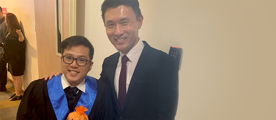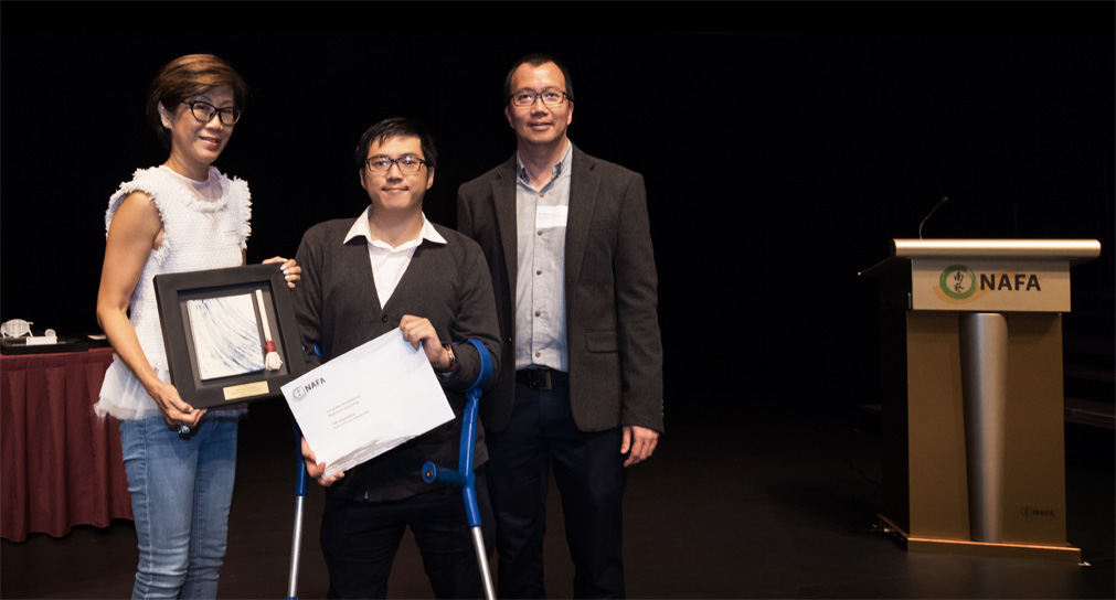 A beaming Alex Lim (2017) with Mr Baey Yam Keng, Guest of Honour at NAFA's graduation ceremony on 6 September 2019. Armed with a Diploma in Advertising, Alex is now ready to shoot his big, original and out-of-the-box ideas!