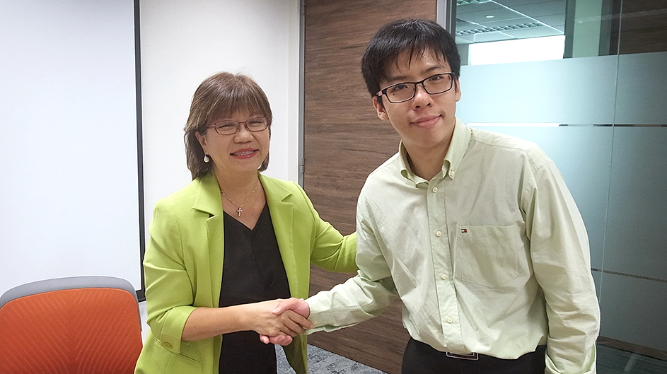 Denise Phua, Mayor, Central Singapore District, MP for Jalan Besar GRC and also Co-founder and Supervisor of the Pathlight School chats with Nico Tay, 2016 recipient of the Dare to Dream scholarship